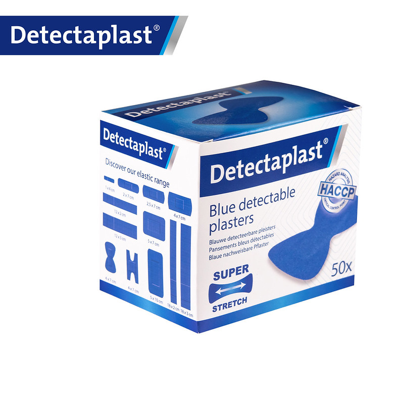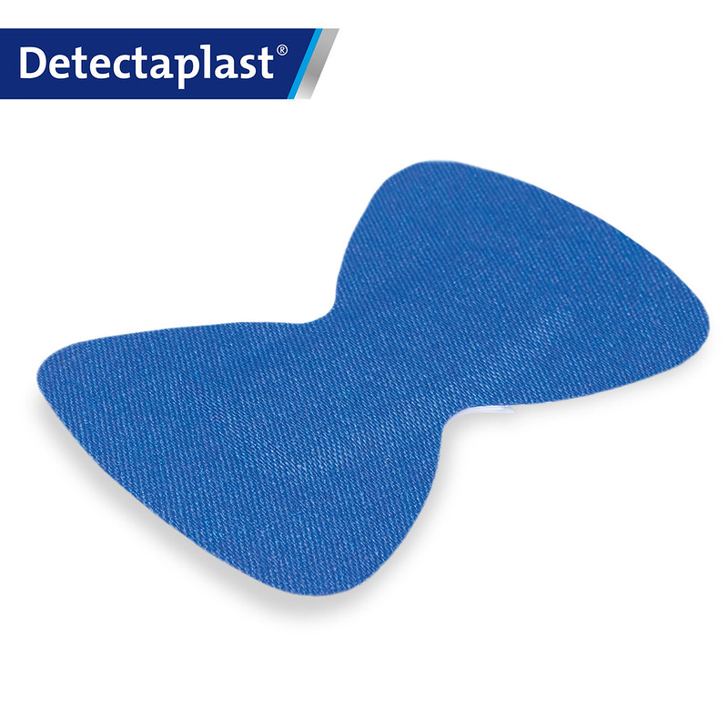 Fertig zugeschnittener Fingerkuppenverband. Mit eingearbeitetem Metallstreifen (detektierbar).